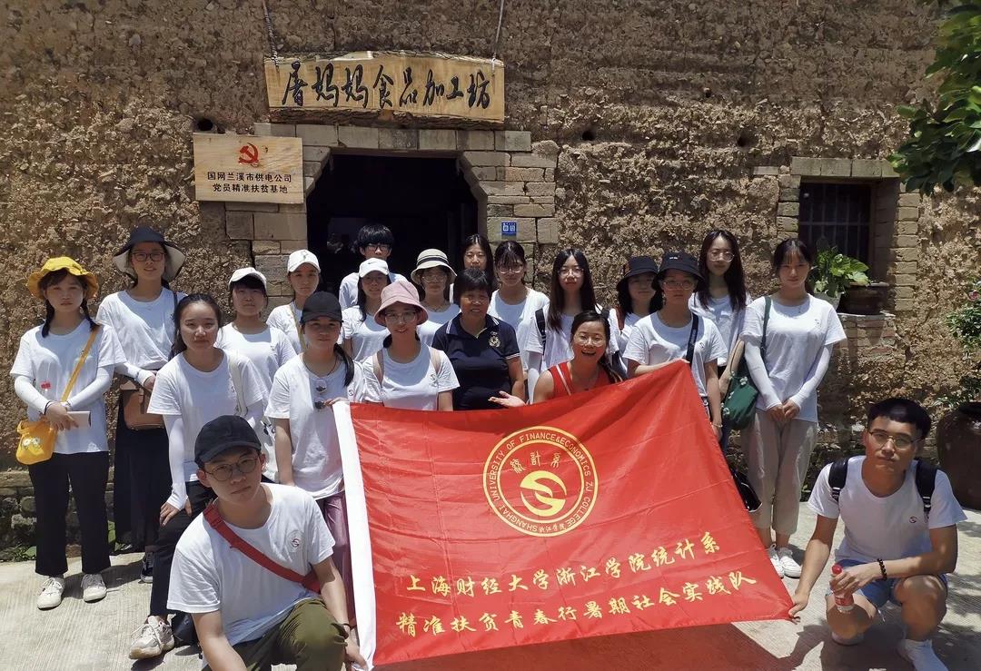 该实践团队由统计系18位优秀学子组成,在心舞工作室和兰溪广播电视台记者的带领下,第一站便来到了位于兰溪市柏社乡屠宅村的屠妈妈食品加工坊。屠妈妈工作坊不仅是国网兰溪市供电公司党员精准扶贫基地,也是心舞工作室党建实践基地,以杨梅加工为主。据心舞介绍,屠妈妈工作坊从泥墙泥地变为合格食品加工点的过程,也是从解决自家杨梅制作到替全村200多户人家解决3000多斤杨梅制作难题的过程。